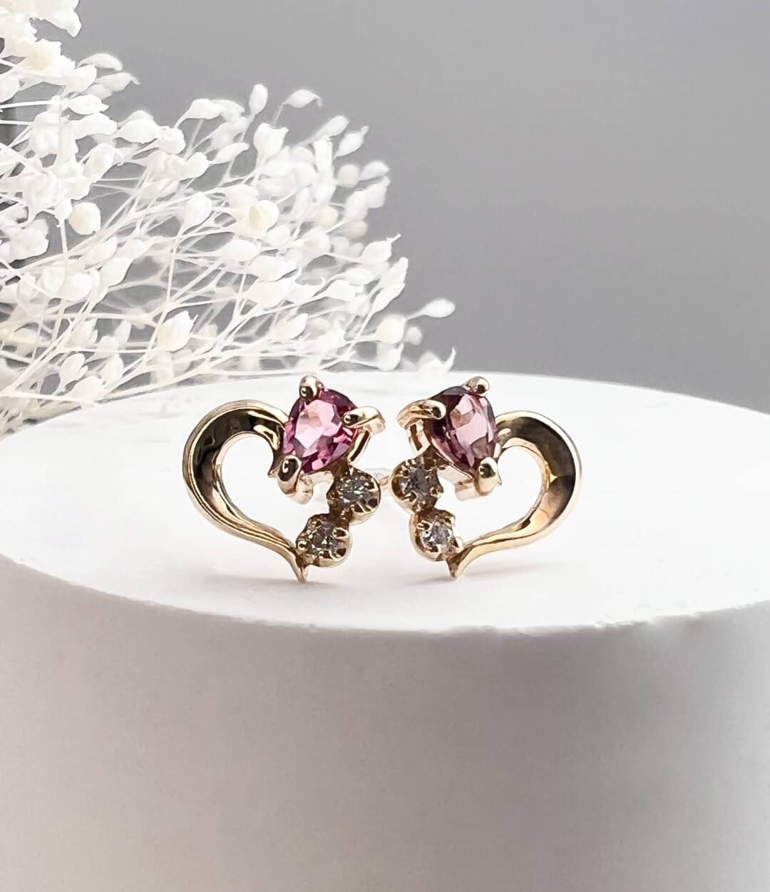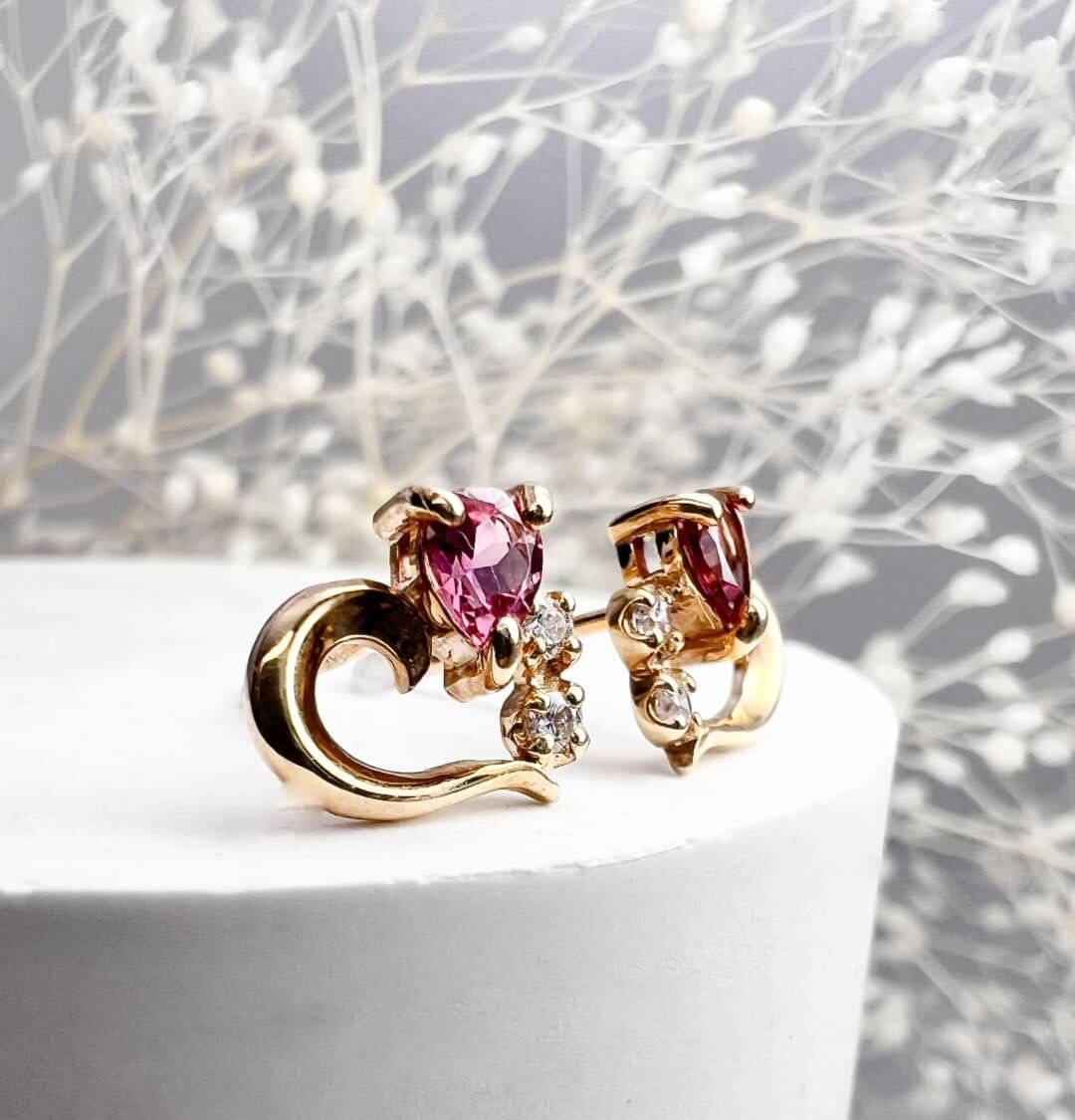 そんなピンクトルマリンを引き立てながらまもキラキラと輝くキュービックジルコニア…そんな2種類の宝石をゴールドのオープンハートに♪可愛らしさに溢れるピアスです!