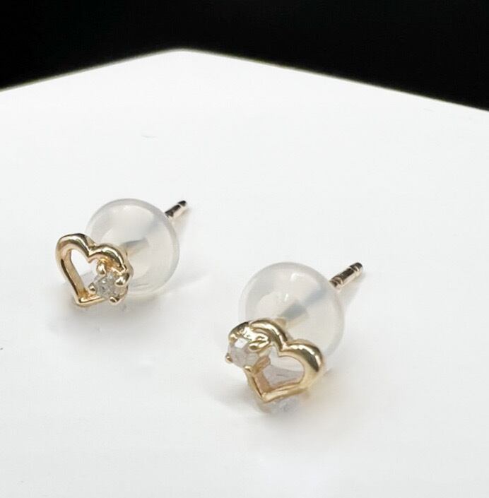 K10 オープンハート&ダイヤモンドピアス 4月誕生石