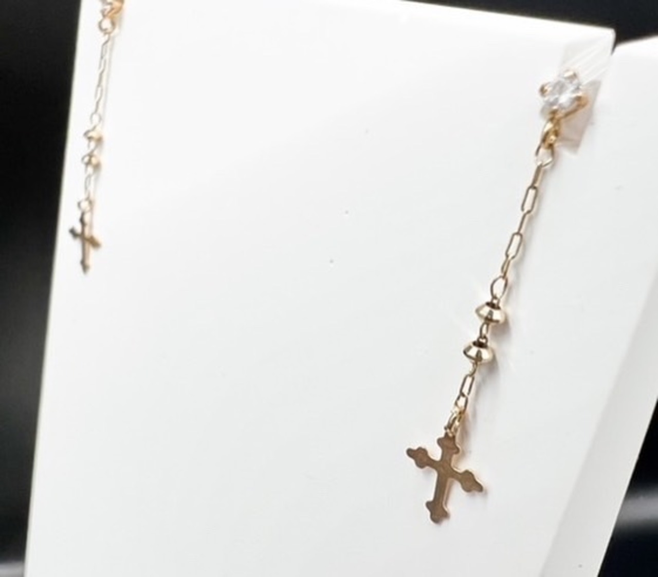 18mmのあずきチェーンにコマ2つ、十字架&キュービックジルコニアがさりげなくオシャレ。