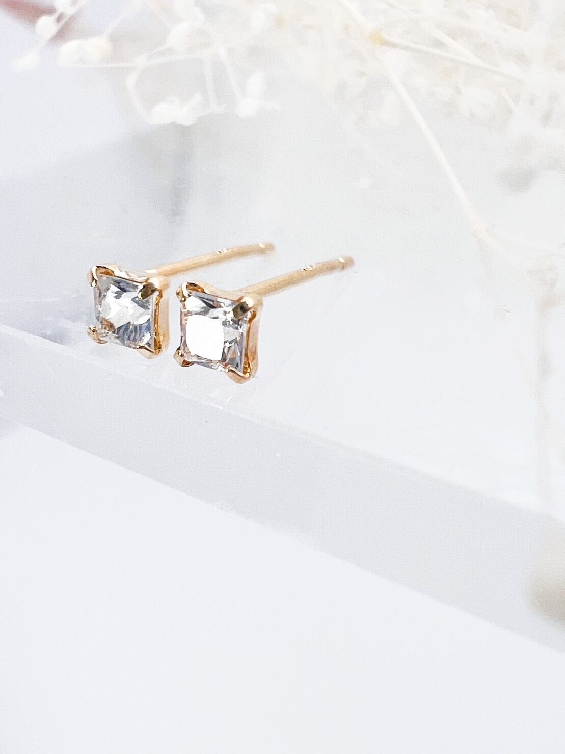 煌びやかながら、清楚さ純粋さを持ち合わせた使い勝手抜群のシンプルなスクエアタイプのピアス♪